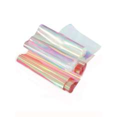 Uma folha de transferência para a criação de Nail Art com um efeito holográfico metálico! O filme pode ser aplicado sobre a unha inteira ou criar padrões brilhantes. Também pode ser usado para de...