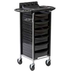 Um lindo carrinho de salão! Preto, elegante e bonito, para manter os utensílios em ordem. Este carrinho de vírgula ajudará você a organizar seus materiais. É equipado com 5 bandejas removíveis e ...