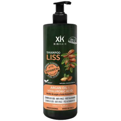 El Liss Champú con Aceite de Argán y Ácido Hialurónico de Xik hair ha sido especialmente formulado para cabellos lisos, encrespados o sometidos a tratamientos de alisado, ofreciendo una limpieza suave que respeta la fibra capilar.