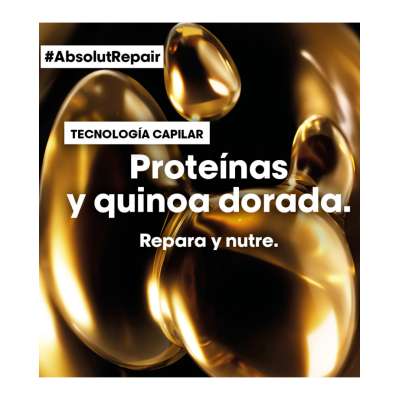 - Champú L’Oréal Serie Expert Absolut Repair 300ml. Tiene una formulación rica en proteínas de quinoa dorada, la cual proporciona la capacidad de reparar y fortalecer el pelo dañado o debilitado mientras lo limpia adecuadamente.