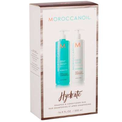Cabelo hidratado é sinônimo de saudável, por isso apresentamos a nova embalagem de Hydrate Moroccanoil. Este pack é especial para cuidar dos seus cabelos e mantê-los profundamente hidratados. O Champô Hidratante Moroccanoil põe fim aos cabelos secos, graças à sua fórmula hidratante. Este shampoo também pode ser usado em cabelos coloridos. O Condicionador Hidratante Moroccanoil, desenvolvido para alisar os cabelos e afrouxar os nós. Uma fórmula suave indicada para o uso diário, deixando os cabelos mais macios, flexíveis e fáceis de pentear. Enriquecido com óleo hidratante junto com um antioxidante, vitamina A, vitamina E e algas vermelhas que fornecem hidratação ideal para todos os tipos de cabelo, desde cabelos normais até cabelos secos.
