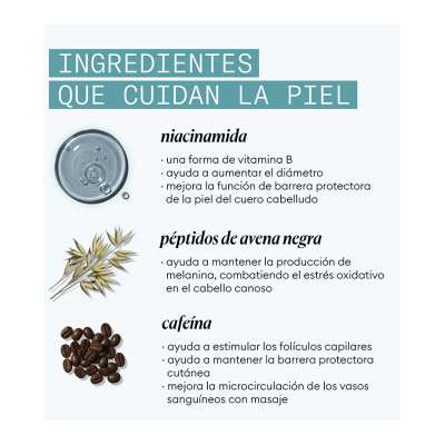 - Con niacinamida, péptidos de avena negra y cafeína