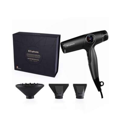 El secador Euphoria es una herramienta profesional de alta potencia diseñada para ofrecer un secado rápido, eficaz y sin esfuerzo. Con un motor brushless (sin escobillas) y tecnología iónica avanzada, este secador permite un flujo de aire estable y eficiente que reduce el tiempo de secado mientras protege la fibra capilar.
