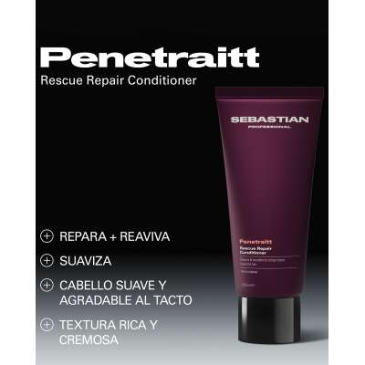 El Acondicionador Reparador Penetraitt de Sebastian está diseñado para darle al cabello dañado una segunda oportunidad, restaurando suavidad, brillo y manejabilidad desde la primera aplicación. Su fórmula cremosa y nutritiva desenreda eficazmente mientras trabaja profundamente para reducir los signos visibles de daño causados por tratamientos químicos, calor o estrés ambiental.
