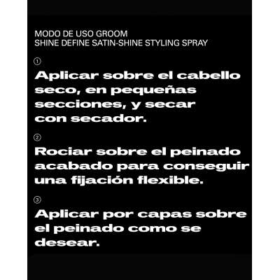 3. Aplicar sobre el estilismo terminado para conseguir fijación flexible y brillo satinado.
